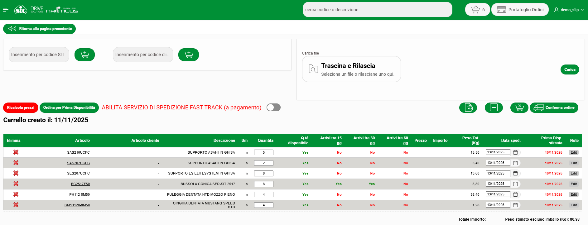 Gli ordini inseriti su Nautilus sono trasferiti in tempo reale direttamente nel sistema gestionale SIT SpA assicurando così una rapida evasione ed evitando qualsiasi rischio di errori nella lettura ed inserimento del vostro ordine.